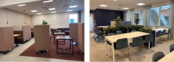 These spaces are based on the same concept as the lounge area outside Café Västan and are designed to provide flexible and social environments where you can choose how you want to study.