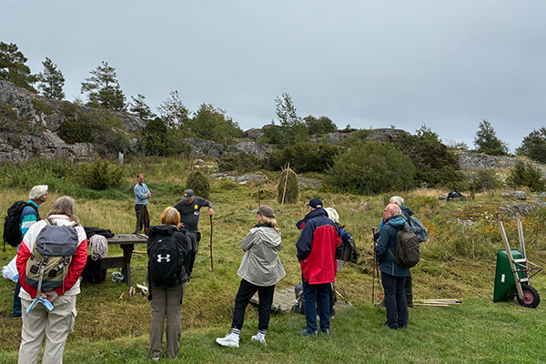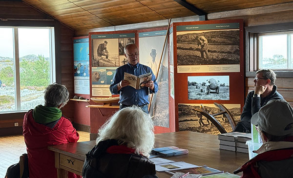 Författaren Fredrik Sjöberg berättade om konstnären och naturmålaren Bruno Liljefors som ägde Bulleröarkipelagen under en period och uppförde jaktstugan. Fler foton på aktiviteter och aktörer som anordnade aktiviteter under veckan hittar du på nationalparkens flöden i Facebook och Instagram. Foto: Länsstyrelsen.