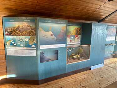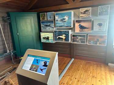 Inne i jaktstugan berättade Länsstyrelsens personal om naturmiljöerna och om livet ovan och under ytan i nationalparken.