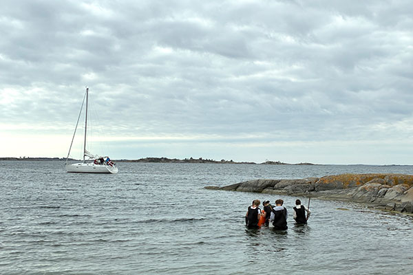 Under veckan besökte skolklasser från årskurs 7 i Värmdös skolor Bullerö och undersökte livet i strandkanten med vadarstövlar, vattenkikare och håvar.