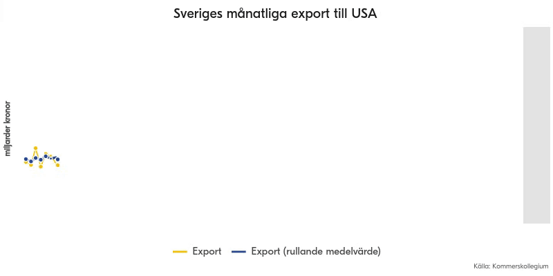 Sveriges varuexport till USA minskade med 17 procent mellan april och september 2025 jämfört med samma period 2024. USA:s genomsnittliga tullnivå mot omvärlden är 19 procent i dag – att jämföra med 2,5 procent i början av 2025.