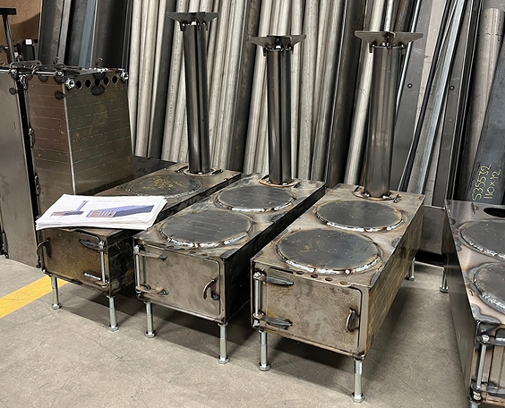 Hjälpinsamlingen Skicka vidare till Ukraina har tagit fram en kamin för värme och matlagning. Nu byggs den av elever på Lindholmens tekniska gymnasium.