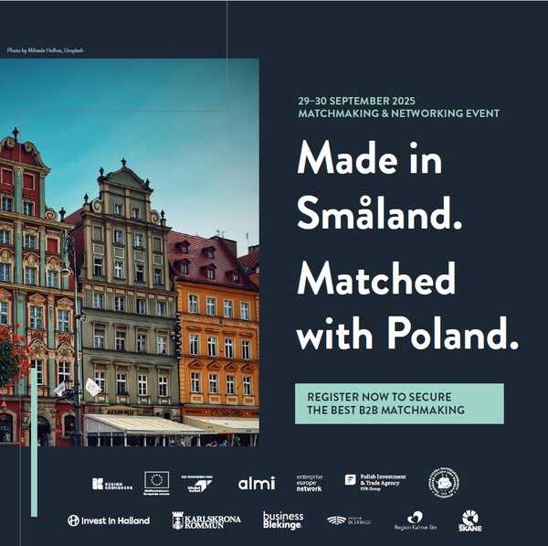 Svensk-Polska Handelskammaren och Polens byrå för investeringar och handel (PAIH), tillsammans med Region Kronoberg, Blekinge, Halland, Skåne, Almi Södra Sverige, Enterprise Europe Network och Karlskrona kommun, bjuder in till ett matchmaking- och nätverksevenemang.