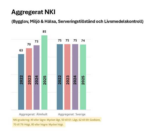Företagens omdömen om kommunens myndighetsservice pekar uppåt. Nöjdheten mäts genom Nöjd-Kund-Index (NKI). Under årets fem första månader har det aggregerade NKI-värdet nått 85 – en tydlig förbättring. För bygglov ligger NKI nu på 81.