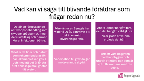 Ni kan läsa mer om skydd mot RS-infektion hos barn på Folkhälsomyndigheten Sjukdomsinformation om RS-virusinfektion — Folkhälsomyndigheten och om Beyfortus på Läkemedelsverket Beyfortus (nirsevimab) | Läkemedelsverket.
