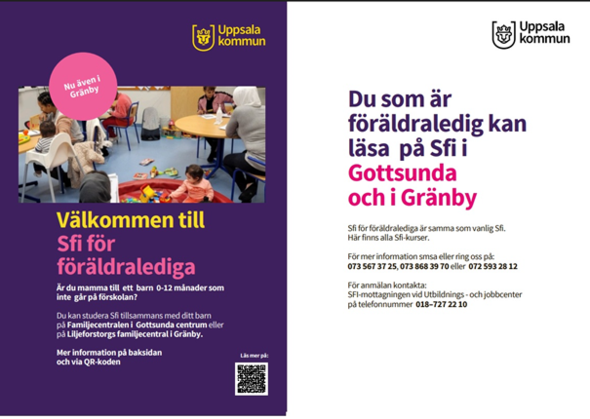 Nedanstående informationsblad finnas för utskrift på Uppsala kommuns hemsida Sfi för dig som är föräldraledig med litet barn.