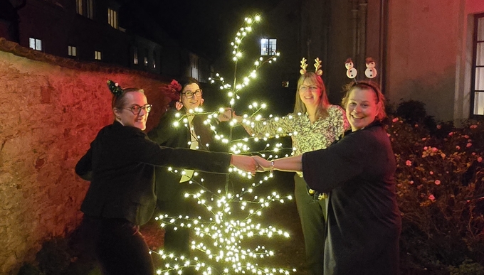 God jul önskar projektgruppen bestående av Cecilia Palmén, Maria Norderbrim, Maude Fyrenius och Ulrika Hübner. Foto: Anna Sorby